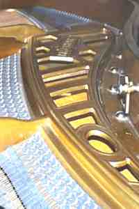 Im vorigen Jahrhundert, als die Flügel und Pianos noch gerad-saitig gebaut wurden, hatte der Holzrasten die Kräfte aufzufangen, die durch die gespannten Saiten im Klavier wirksam werden.