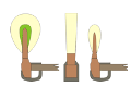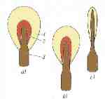 dem gleichnamigen Handwerkzeug ähnlich, hat einen Stiel aus
